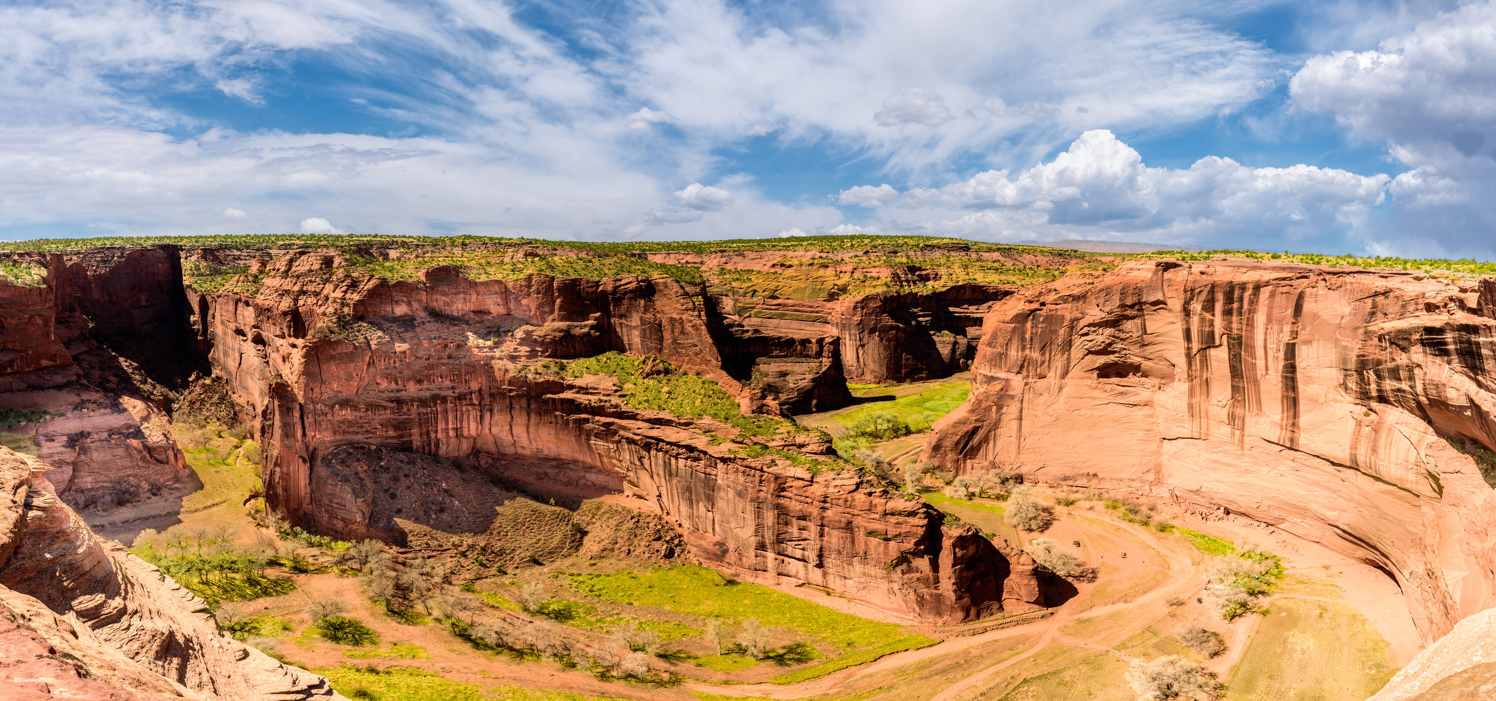 Chinle Creek—sometimes called Chinle Wash—is the quiet lifeline of the canyon. Fed by snowmelt and seasonal rains, it meanders along the canyon floor before eventually joining the San Juan River. From above, it appears as a thin green ribbon of trees cutting through red sandstone. On the ground, it is shallow in places but capable of sudden outbursts after a storm. The fertile soils along its banks support cottonwoods, crops, and grazing land that Navajo families continue to depend on.