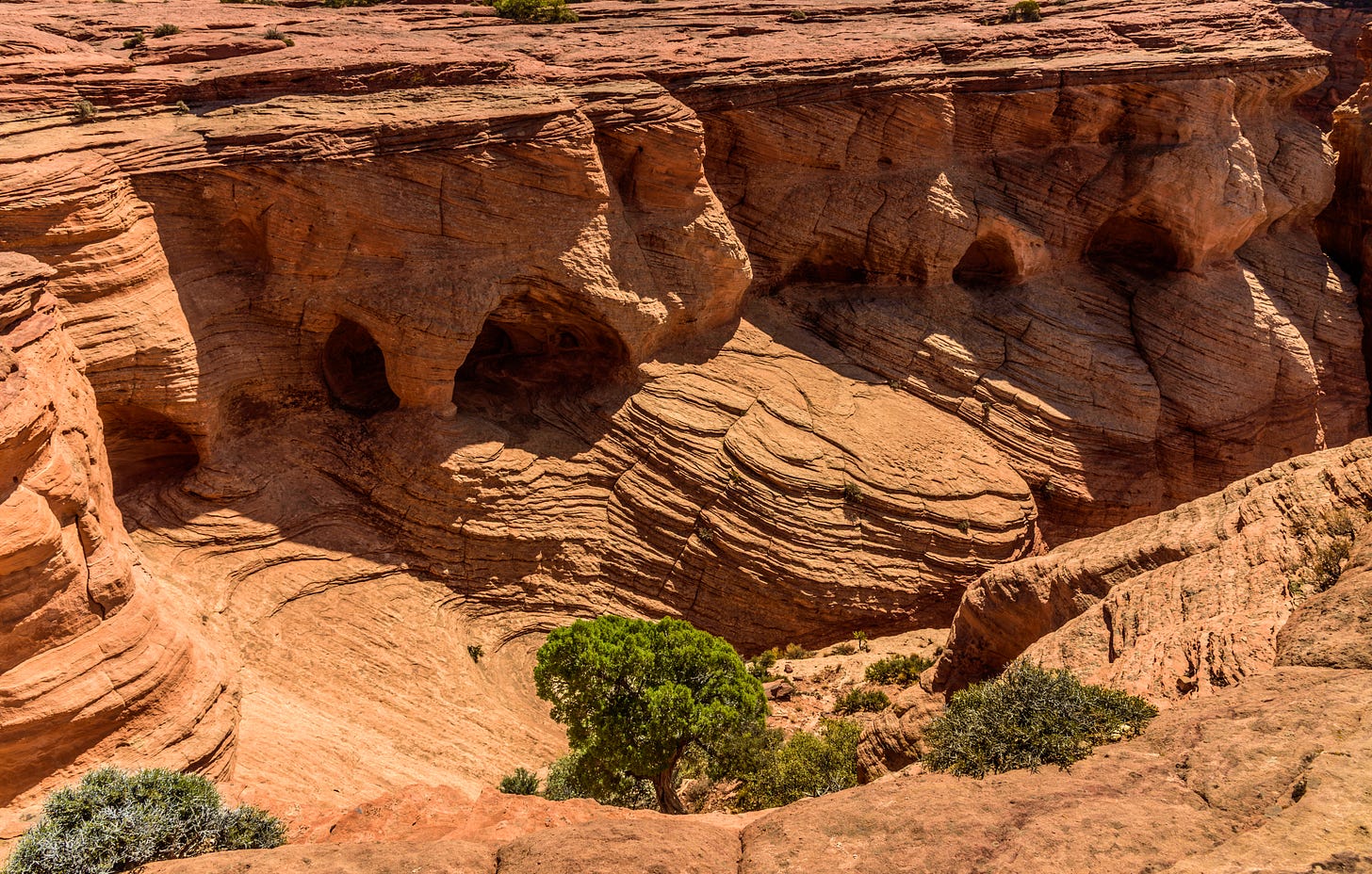 Here, ancient dwellings share the canyon with living homes. Cliff structures, built centuries ago, remain carved into the stone, while Navajo families continue to farm, raise livestock, and maintain deep ties to the land below.