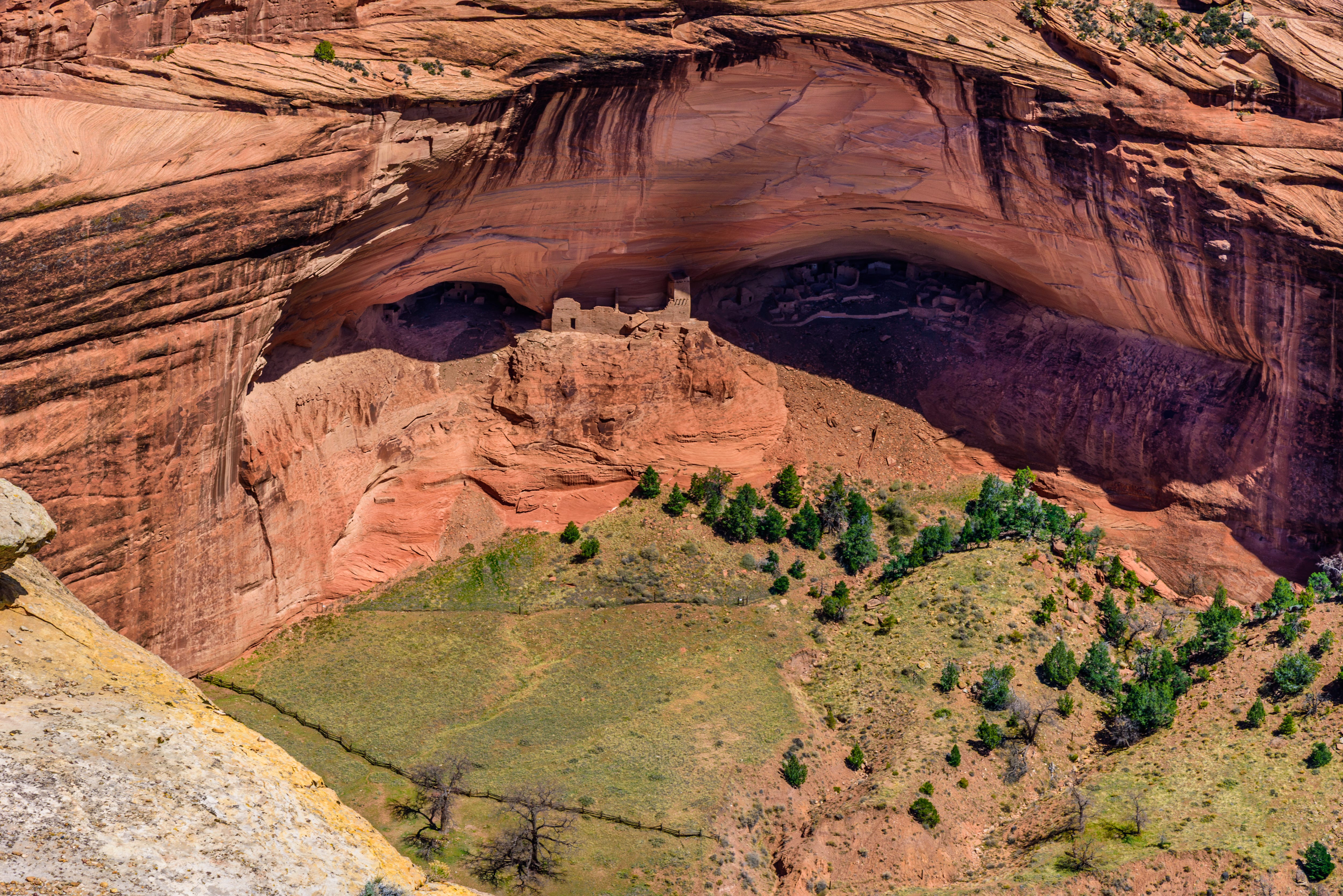 The Ancestral Puebloans built their homes into sheltered alcoves between roughly 350 and 1300 CE, leaving behind cliff dwellings that still cling improbably to the canyon walls. Later, Hopi people farmed the canyon floor before moving on. Today, the Diné (Navajo) people continue to live, farm, and raise livestock within the canyon, making Canyon de Chelly one of the few National Park Service units that is also a living homeland. Although the monument is administered by the National Park Service, it lies entirely within the Navajo Nation, and the presence of hogans, cultivated fields, and grazing animals remains an integral part of the landscape.
